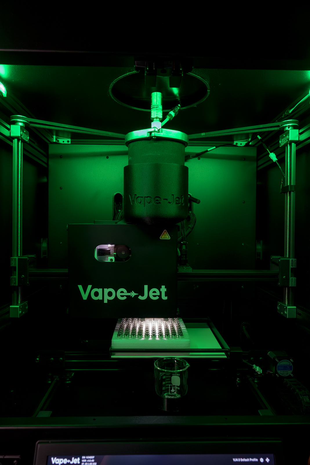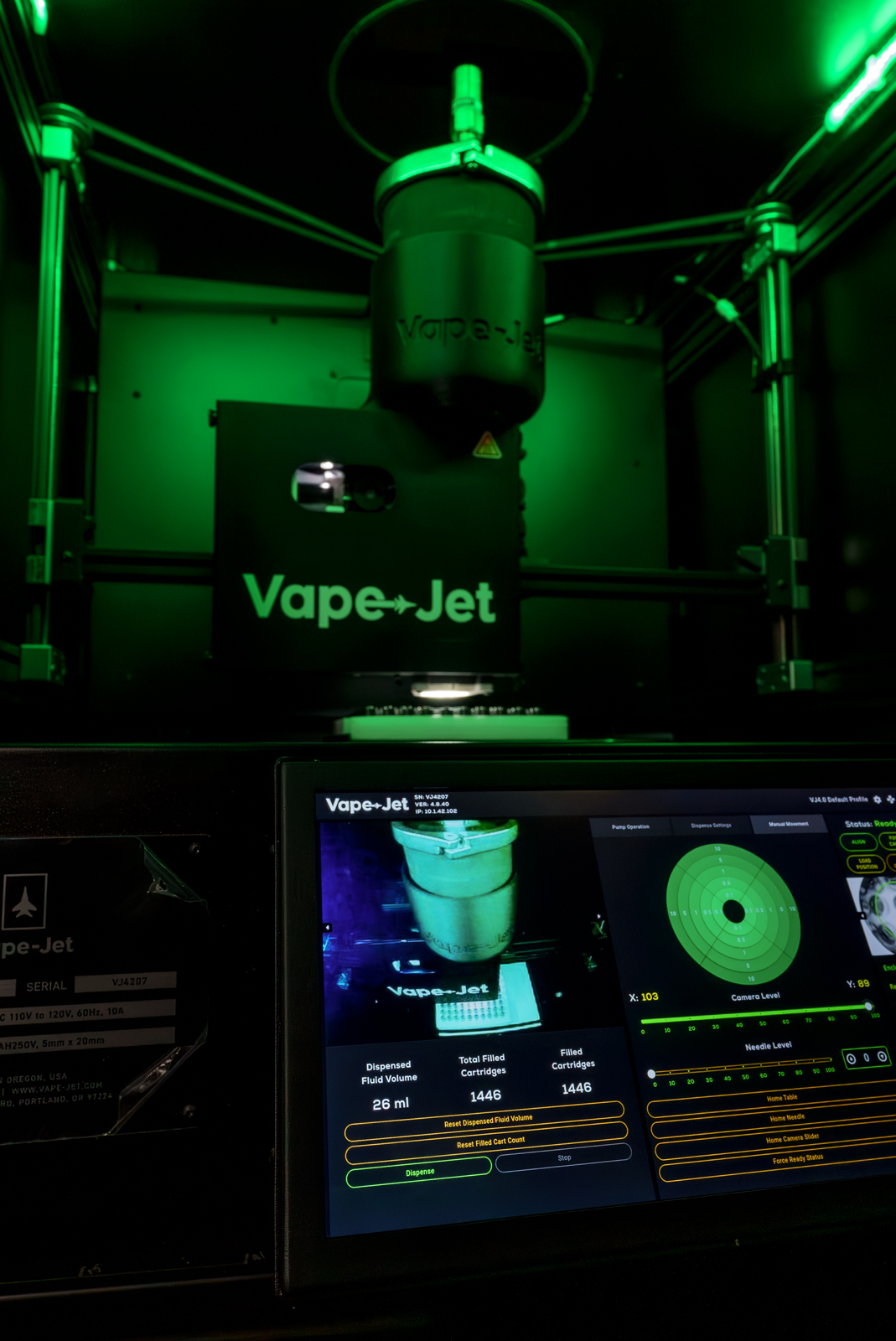 The latest evolution of Vape-Jet’s fully automatic platform eliminates inefficiencies and reduces labor costs while preserving terpenes and overall oil quality. Hand-built in Oregon using American-made parts, the Vape-Jet 4.0 Top Load, designed for larger batches and high-volume SKU production, can fill between 5,000 and 10,000 cartridges or AIO devices per shift.
